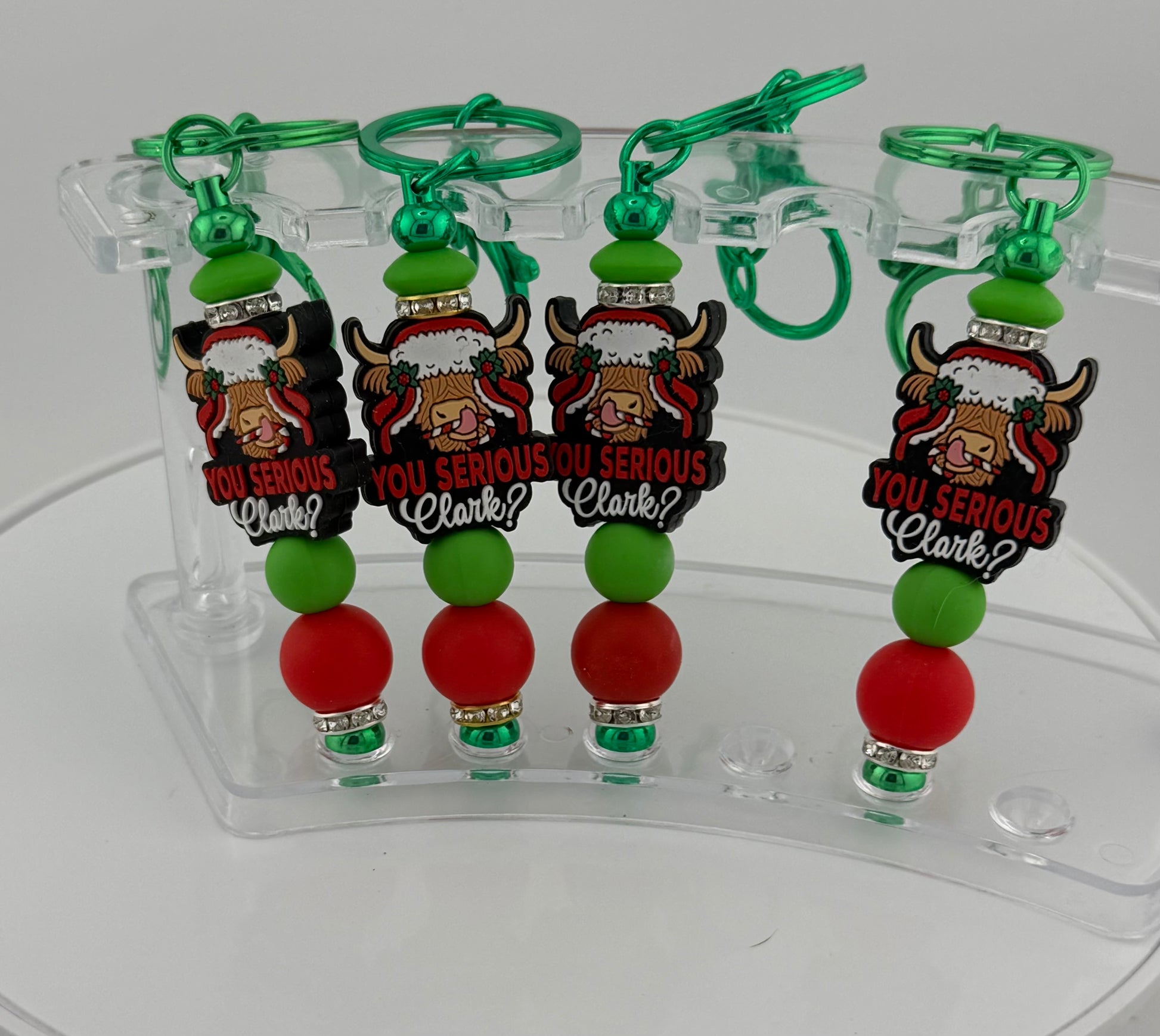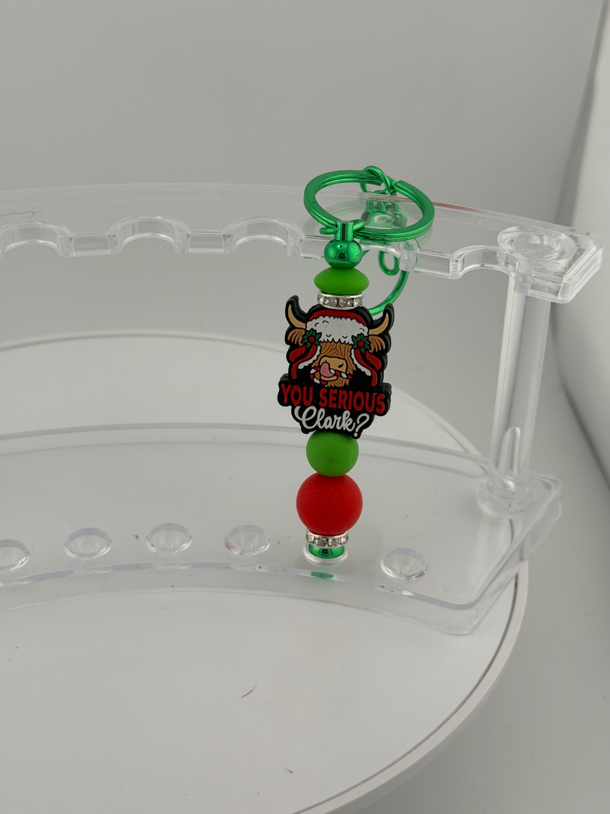 Get in the holiday spirit with this shiny green keychain featuring a focal cow bead inspired by the hilarious Christmas movie "Christmas Vacation". It's the perfect accessory for anyone who loves a good laugh and trule enjoys the holiday season! Grab one for yourself or as a gift for a fun-loving friend.