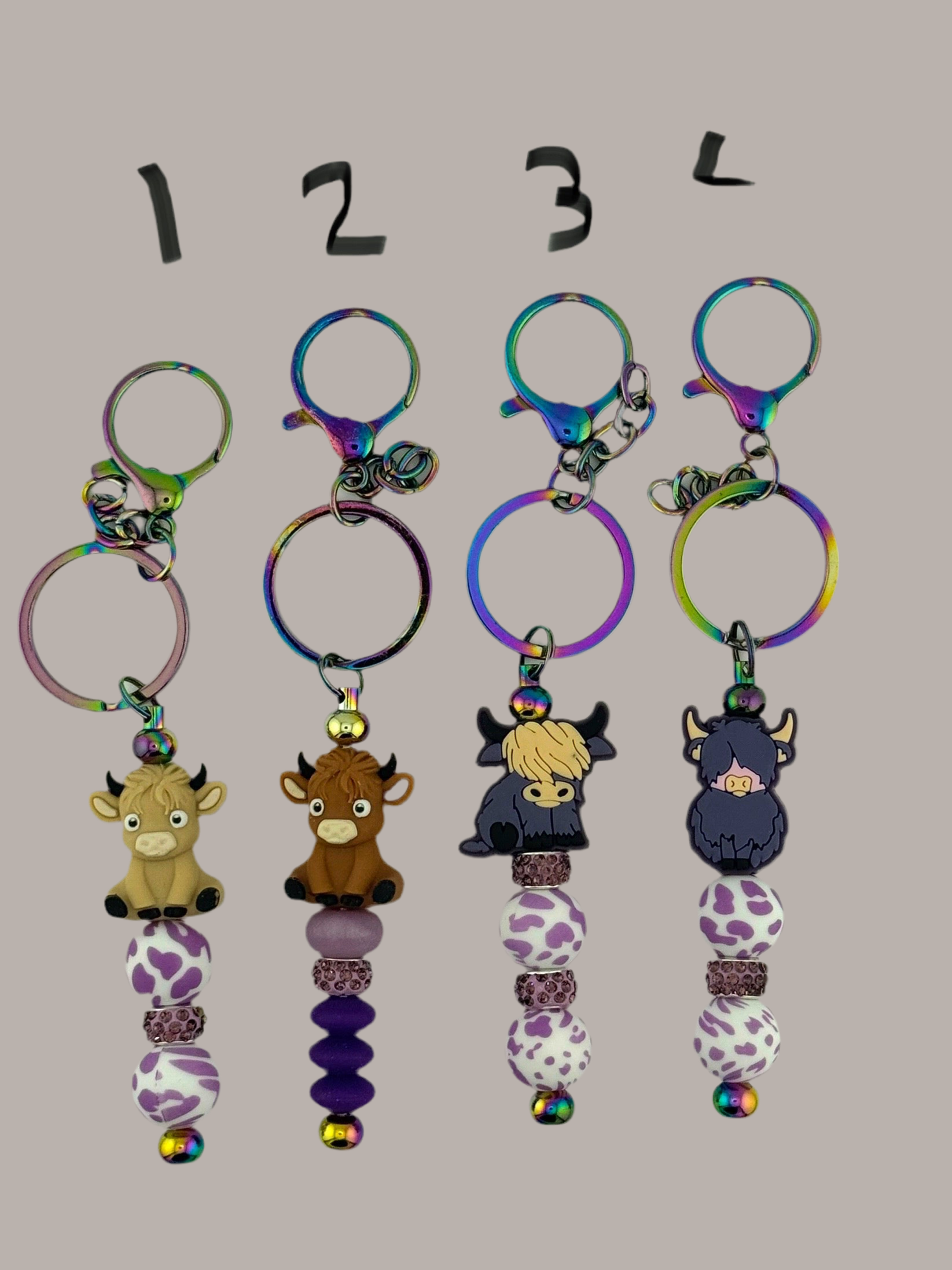 Add a splash of fun to your keys with these playful swirly color keychains! Each one shines brightly, swirling with a rainbow of hues that catch the eye. Purple beads featuring quirky cowprint spots add a unique twist, making them perfect for anyone who loves a pop of personality and a bit of whimsy wherever they go.